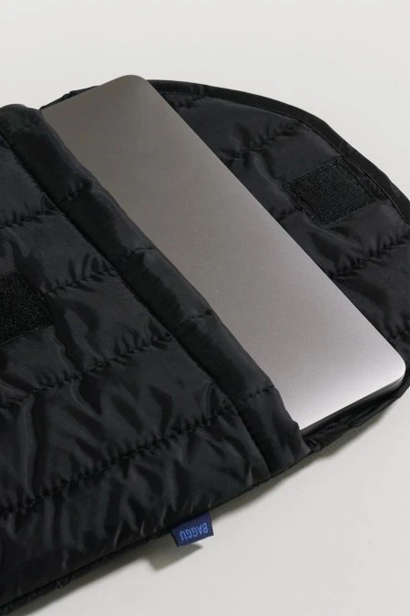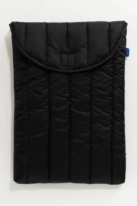 Your laptop does so much for you. Doesn’t it deserve a comfy cozy place to live? Our puffy laptop sleeve is quilted and stuffed to provide your 16″ laptop or tablet with just enough padding for comfortable rides. By Baggu.