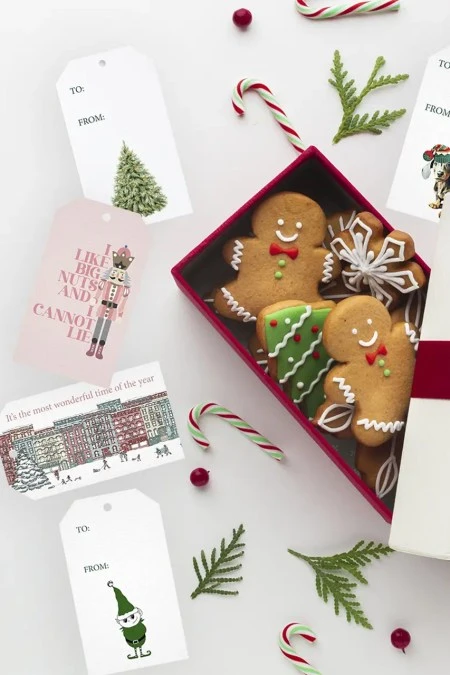 Box Set of 10 Holiday Gift Tags White Twine included 2″ x 3.5″ packaged in clear plastic box (recyclable) Designed and Digitally Printed with care in Canada. By Cardideology.