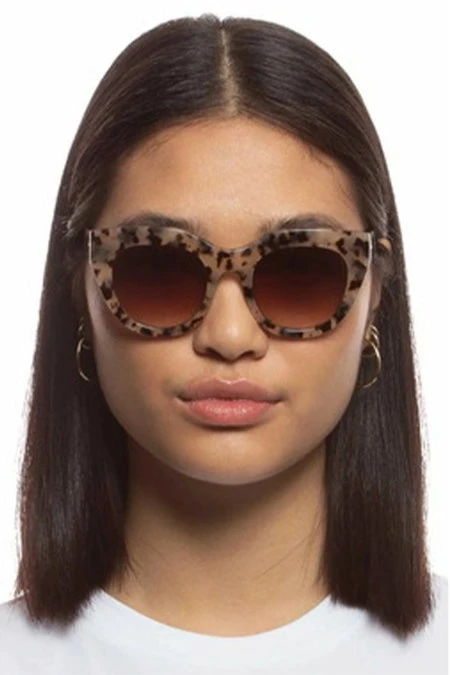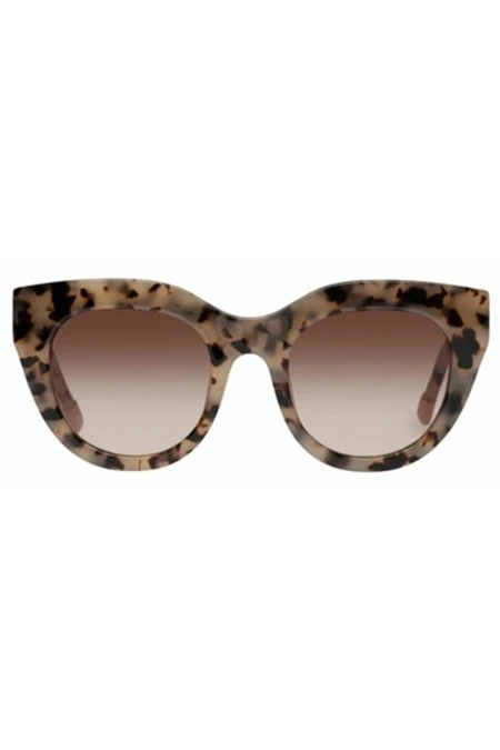 Oversized and dramatic proportions reminiscent of a cat-eye. Designed with a thick frame and luxurious metal top bar inlay, then fitted with premium zero base smoke flat lenses. By Le Specs.