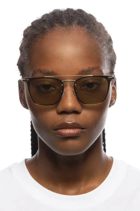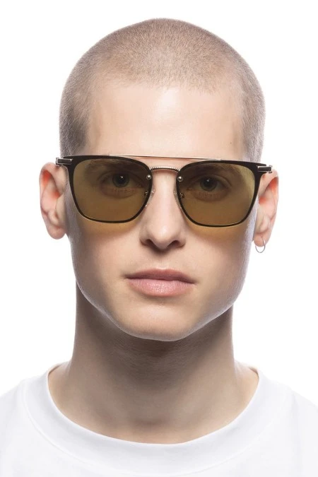 With a minimalistic square silhouette and futuristic detailing, our SHEESH sunglasses are ideal for all face shapes and are the perfect pair of summer sunglasses. Designed with a three-dimensionally crafted metal flag stripe temples, this flattering unisex style features adjustable nose pads for a bespoke fit. Finished in classic gold with tinted lenses for an effortless vintage look. Sturdy metal frame fitted with allergy-free cushioned PVC nose pads. Fitted with shatterproof and scratch resistant polycarbonate lenses. By Le Specs.