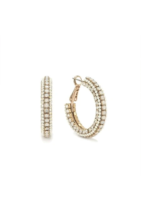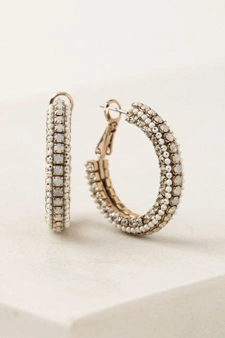 A modern take on 1920s glamour. These arresting hoops are adorned with glimmering crystals and intricate beading for a truly show-stopping look. By Lover’s Tempo.