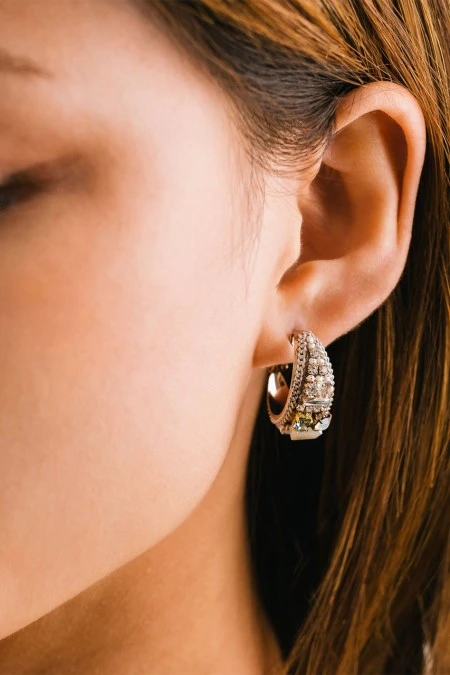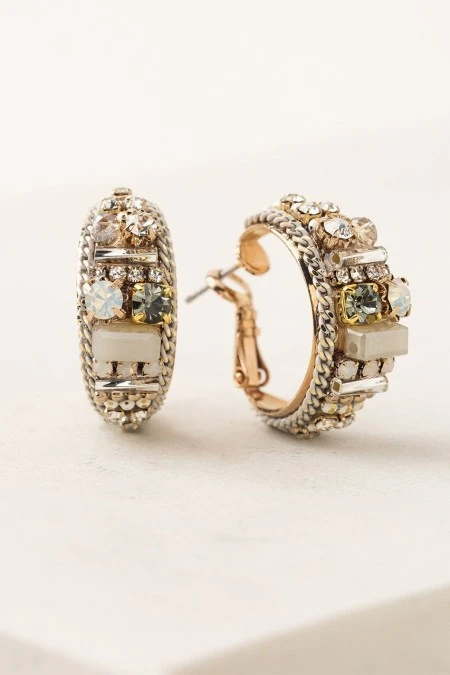 A bold pair of hoops perfect for that special occasion. The art-deco inspired design made with ultra sparkly crystals and chain make a grand statement for any look. By Lover’s Tempo.