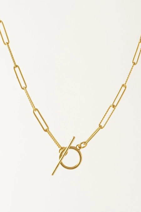 Paperclip chain, Lover’s Tempo edition. Alternating links feature a delicate texture with a toggle clasp. Wear it backwards for a minimal look, or toggle-forward for added finesse. By Lover’s Tempo.