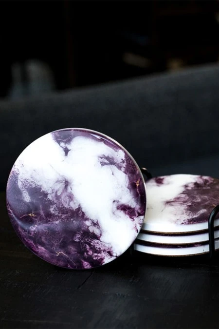 Lynn & Liana Ceramic Resin Coaster In Merlot