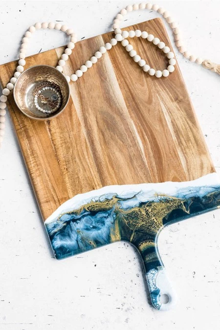 These pieces blend gorgeous Acacia hardwood and an eco-friendly epoxy to create a one-of-a-kind piece of serveware for your home. These cheese boards are perfect for serving a group of 6-8 people.