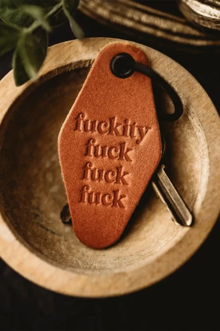 Genuine Leather Motel Keychain Stamped With “Fuckity Fuck Fuck Fuck”. By Misfit Made Goods.