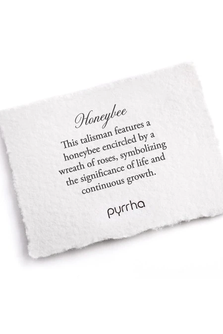 This talisman features a honeybee encircled by a wreath of roses, symbolizing the significance of life and continuous growth. As a certified carbon-neutral B Corp, we’re committed to environmental responsibility — our jewelry is sustainably handcrafted with 100% recycled metals in our Vancouver studio using antique wax seals and imagery from the Victorian era. Member of 1% for the Planet, Ethical Metalsmiths, and the Responsible Jewellery Council. By Pyrrha.