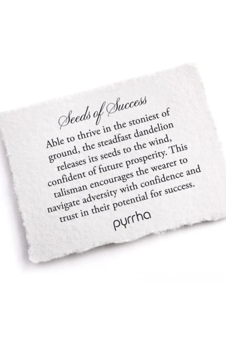 Able to thrive in the stoniest of ground, the steadfast dandelion releases its seeds to the wind, confident of future prosperity. This talisman encourages the wearer to navigate adversity with confidence and trust in their potential for success. As a certified carbon-neutral B Corp, we’re committed to environmental responsibility — our jewelry is sustainably handcrafted with 100% recycled metals in our Vancouver studio using antique wax seals and imagery from the Victorian era. Member of 1% for the Planet, Ethical Metalsmiths, and the Responsible Jewellery Council. By Pyrrha.