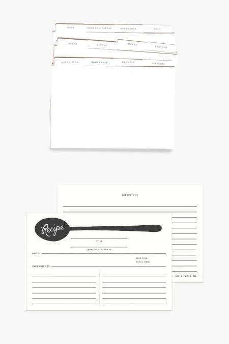 Bring a little cheer and charm to your kitchen with our floral Recipe Tins. Each box features a gold metallic interior, a gold-framed label on the front, and includes 24 recipe cards and 12 recipe dividers. By Rifle Paper Co.