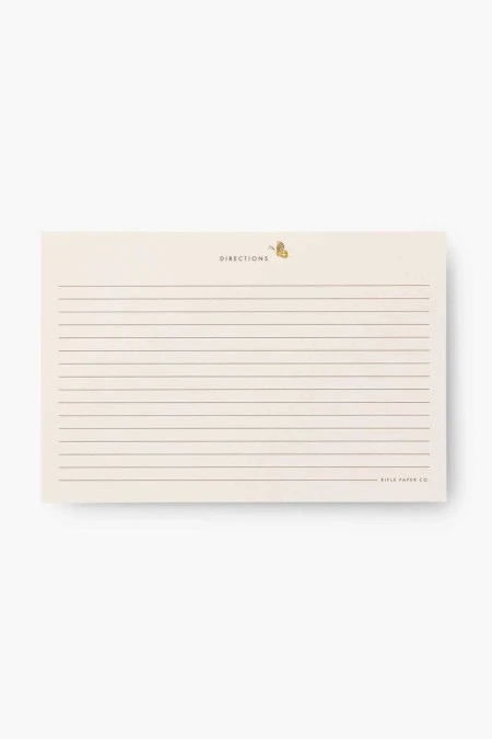 Jot down ingredients and instructions for your favorite dishes with our recipe cards, which can be tucked neatly inside our recipe tins. By Rifle Paper Co.