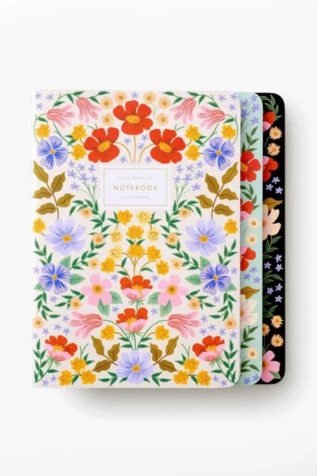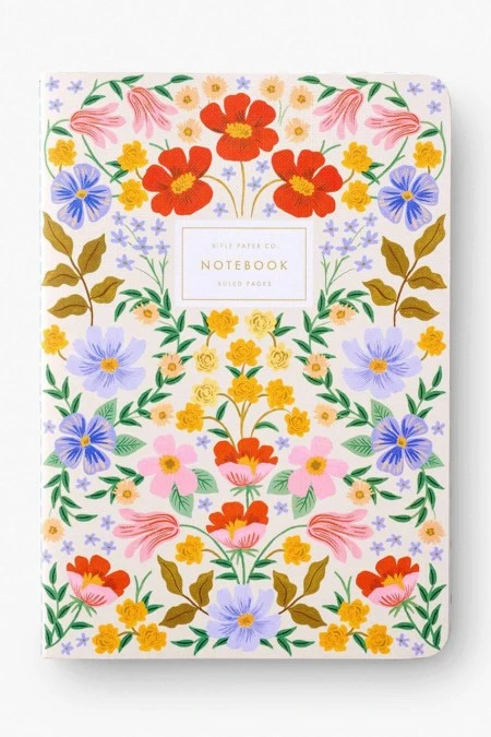 Good things come in threes, and our Stitched Notebook Set is no exception. Each bundle features three notebooks with full-color covers, stitched binding, gold foil accents, and 64 ruled pages. By Rifle Paper Co.