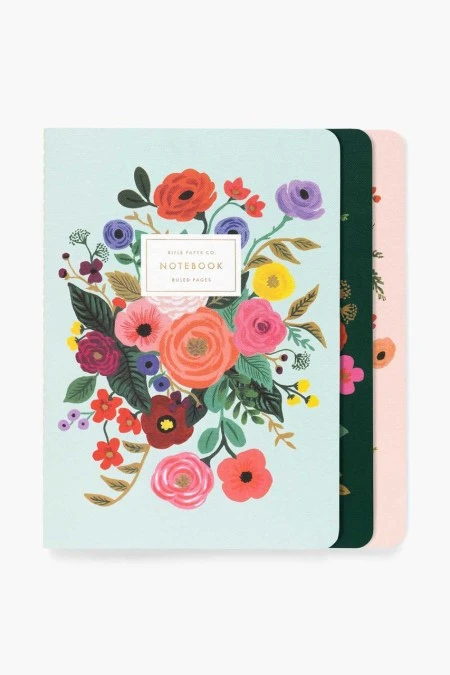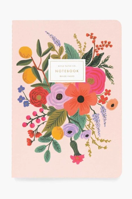 Good things come in threes, and our Stitched Notebook Set is no exception. Each bundle features three notebooks with full-color covers, stitched binding, gold foil accents, and 64 ruled pages. By Rifle Paper Co.