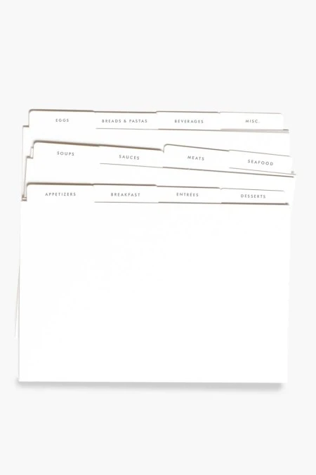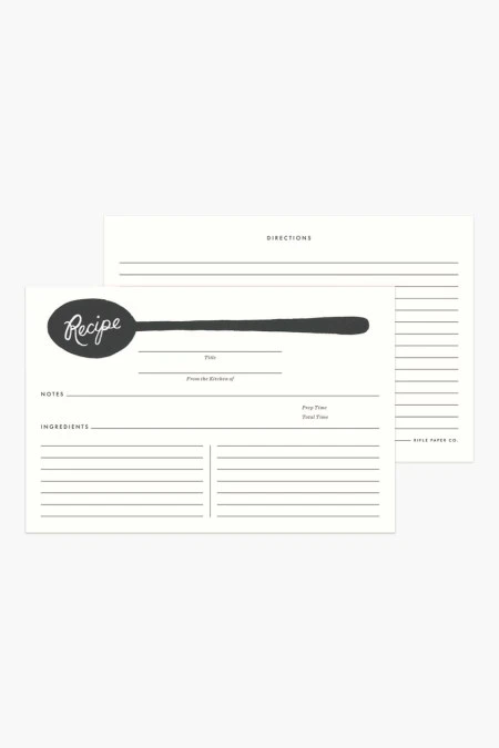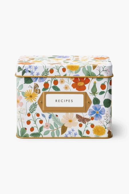 Bring a little cheer and charm to your kitchen with our floral Recipe Tins. Each box features a gold metallic interior, a gold-framed label on the front, and includes 24 recipe cards and 12 recipe dividers. By Rifle Paper Co.