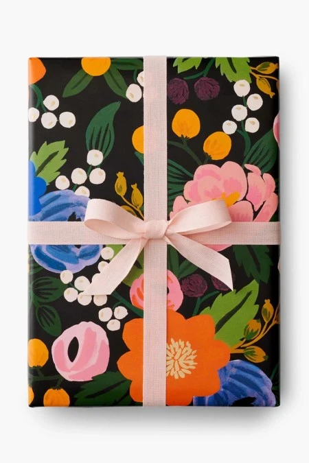 Dress up presents and projects with our wrapping rolls, which feature eight feet of paper with colorful illustrations, gold foil accents, and gridlines on the back. Rifle Paper Co.
