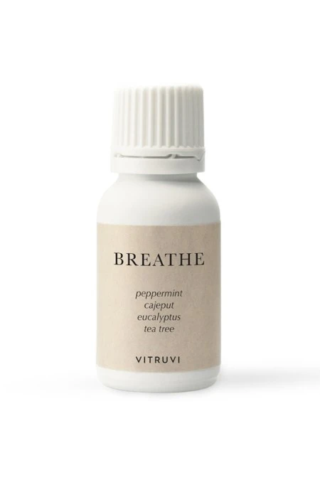 Breathe is minty and cooling. Blended with Peppermint, Cajeput, Eucalyptus, and Tea Tree, it’s inspired by menthol balms and deep inhales. Breathe is best diffused when you’re under the weather and want to feel refreshed. By Vitruvi.