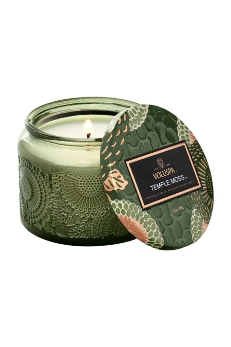 Voluspa’s unique coconut wax blend is hand-poured into a 3.2 oz. embossed glass vessel and is topped with a metal lid, adorned with Japonica detailing that keeps the candle dust-free when not in use. The single wick allows you to enjoy fragrance throw for 25 hours. Our candles are hand-poured in the United States and feature our proprietary, clean-burning coconut wax blend and 100% natural wicks. Our products are free of phthalates, pesticides, parabens and sulfates and are never tested on animals. Up-cycle this best seller into a keepsake after the last burn. Voluspa invites you to seek solace in the forest floor. Ground down in the healing notes of cool moss, dewy leaves, wet stones and warm sun peeking through the thicket of Hinoki branches. The Master Perfumer herself, Mother Nature, will guide you to tranquility through rhythmic sights, sounds andscents of her lush forest. All are welcome to wander the aromatic grounds of Temple Moss. By Voluspa.