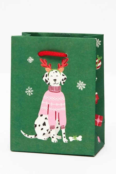 This holiday-themed bag is ideal for the festive season, featuring a design from Paper Source! It comes in a small size, measuring 4.5” x 2.5” x 6”. You can pair it with our charming bows, tags, and tissue paper to add a touch of elegance to your gift. By Waste Not Paper.